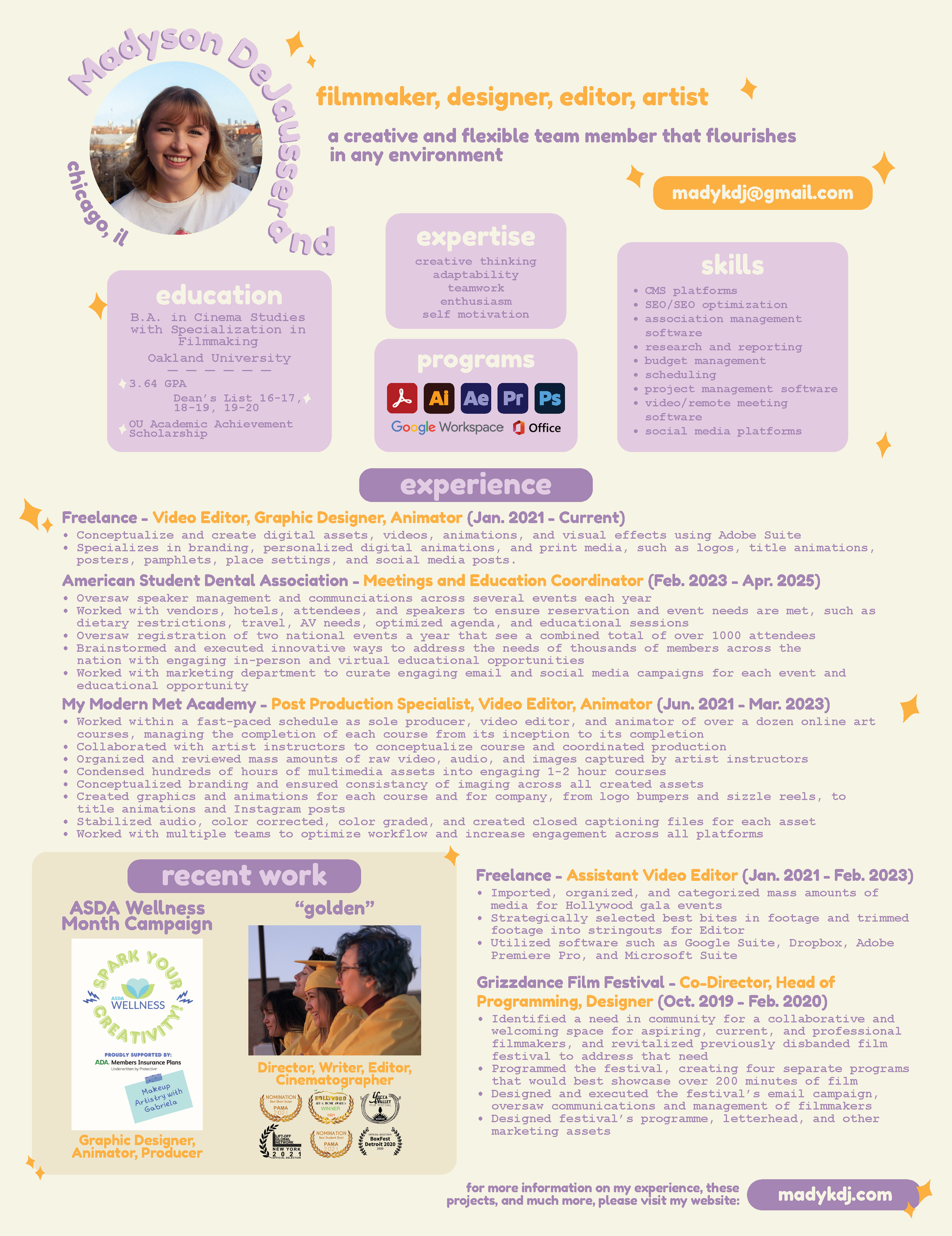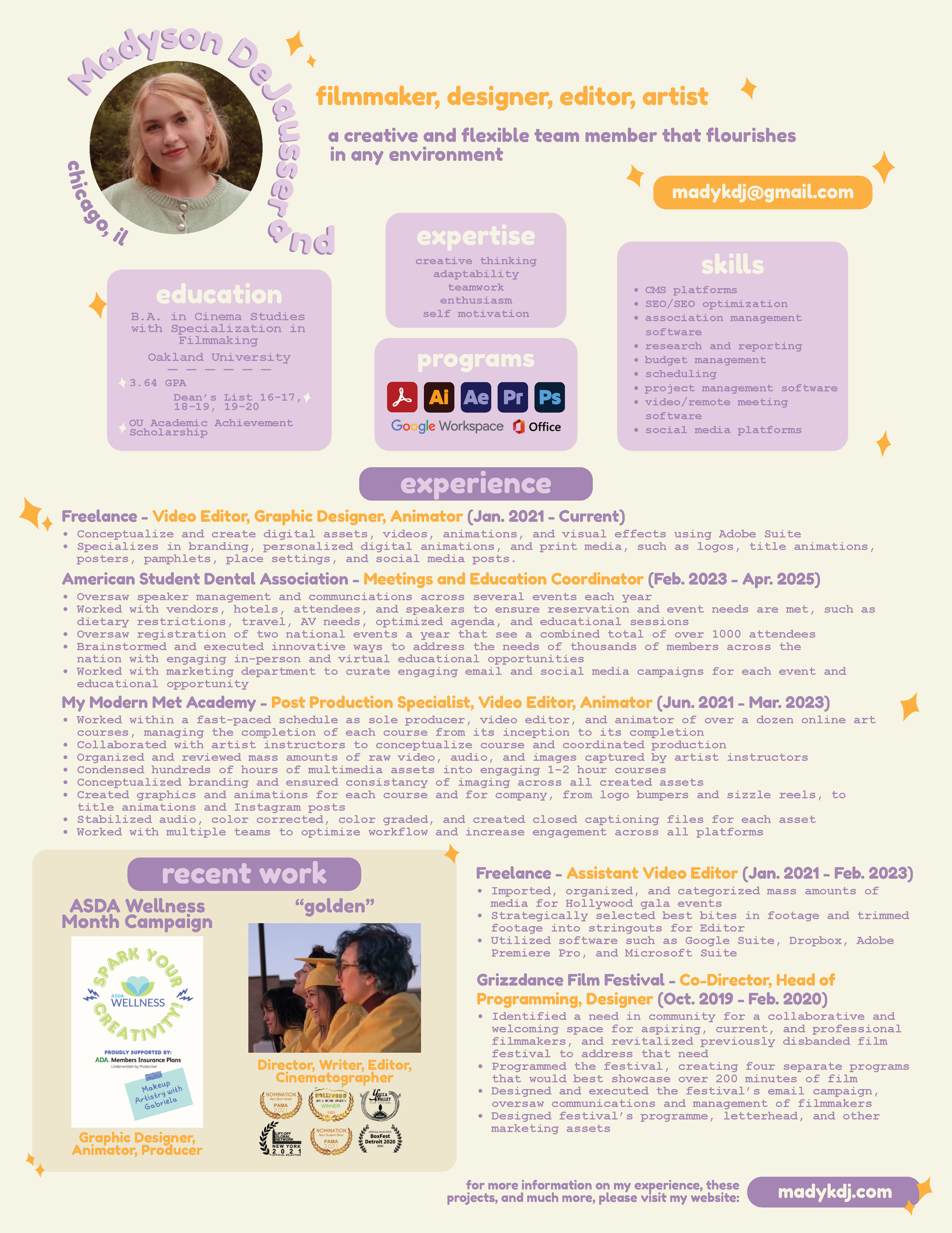 i have over 5 years of experience in video editing, 2d animation, video management, and so much more. check out my credits here